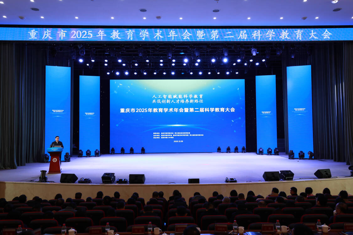 12月28日,重庆市2025年教育学术年会暨第二届科学教育大会在重庆市第八中学校召开。大会以“人工智能赋能科学教育 共筑创新人才培养新路径”为主题,聚焦人工智能时代下的科学教育创新,探索智能技术赋能科学教育的新模式、新路径,来自重庆相关教育机构代表、教师代表等共计1200余人参会。